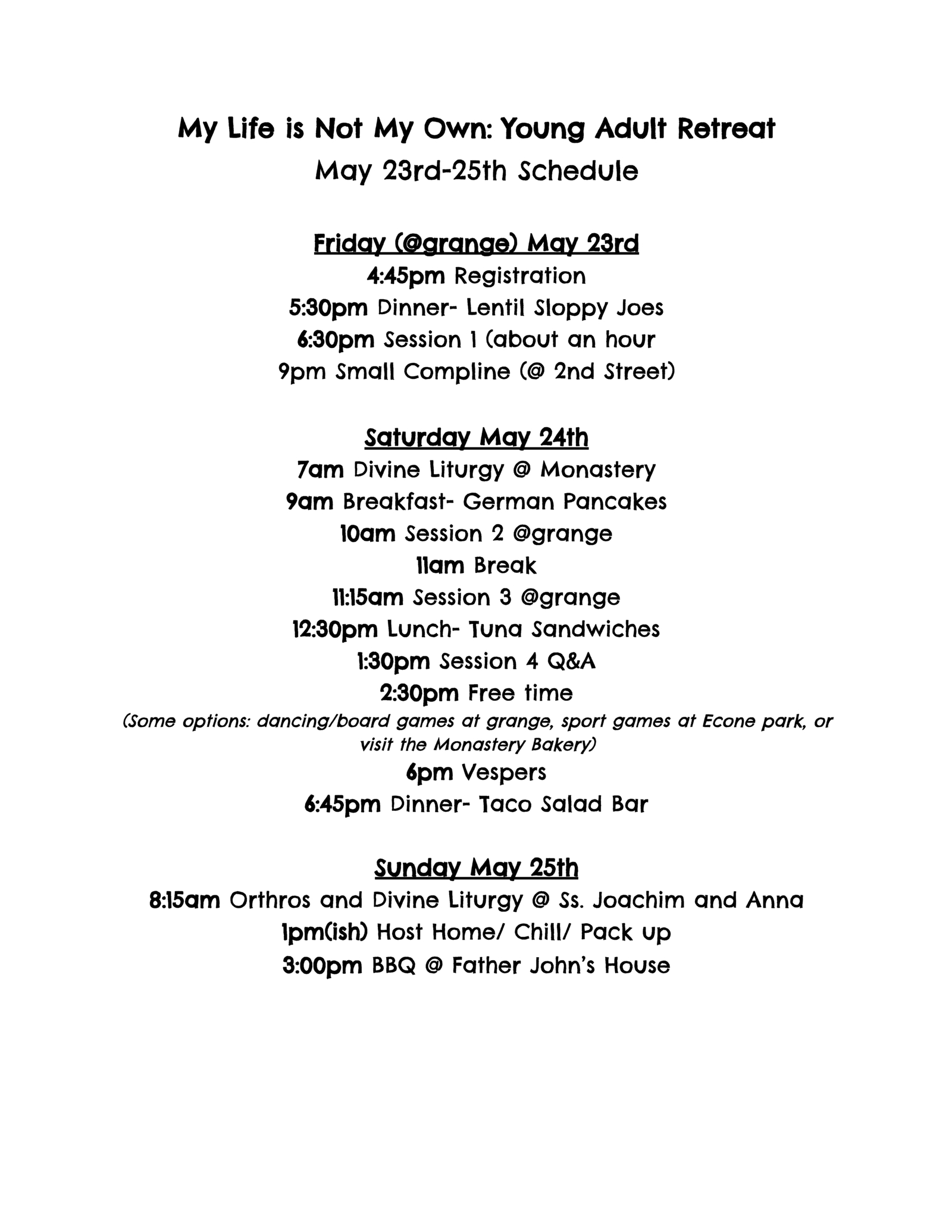 Young Adult Retreat (May 23rd - 25th, 2025)